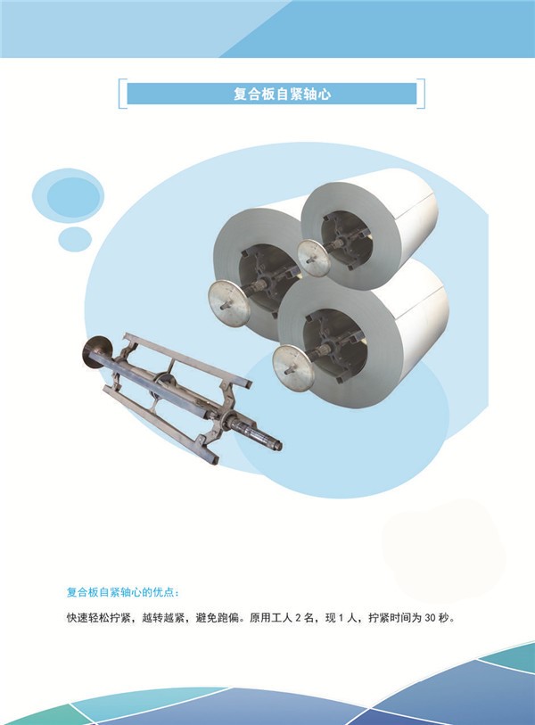 遼寧鑫碩智能機(jī)械自主研發(fā)的專利設(shè)備-復(fù)合板自緊軸芯,30秒快速輕松擰緊,越轉(zhuǎn)越緊避免跑偏,相比較普通的軸芯,可以節(jié)省人工1-2人,現(xiàn)只用1人,從而節(jié)省了人工成本,真正實現(xiàn)了省時省力省人工。